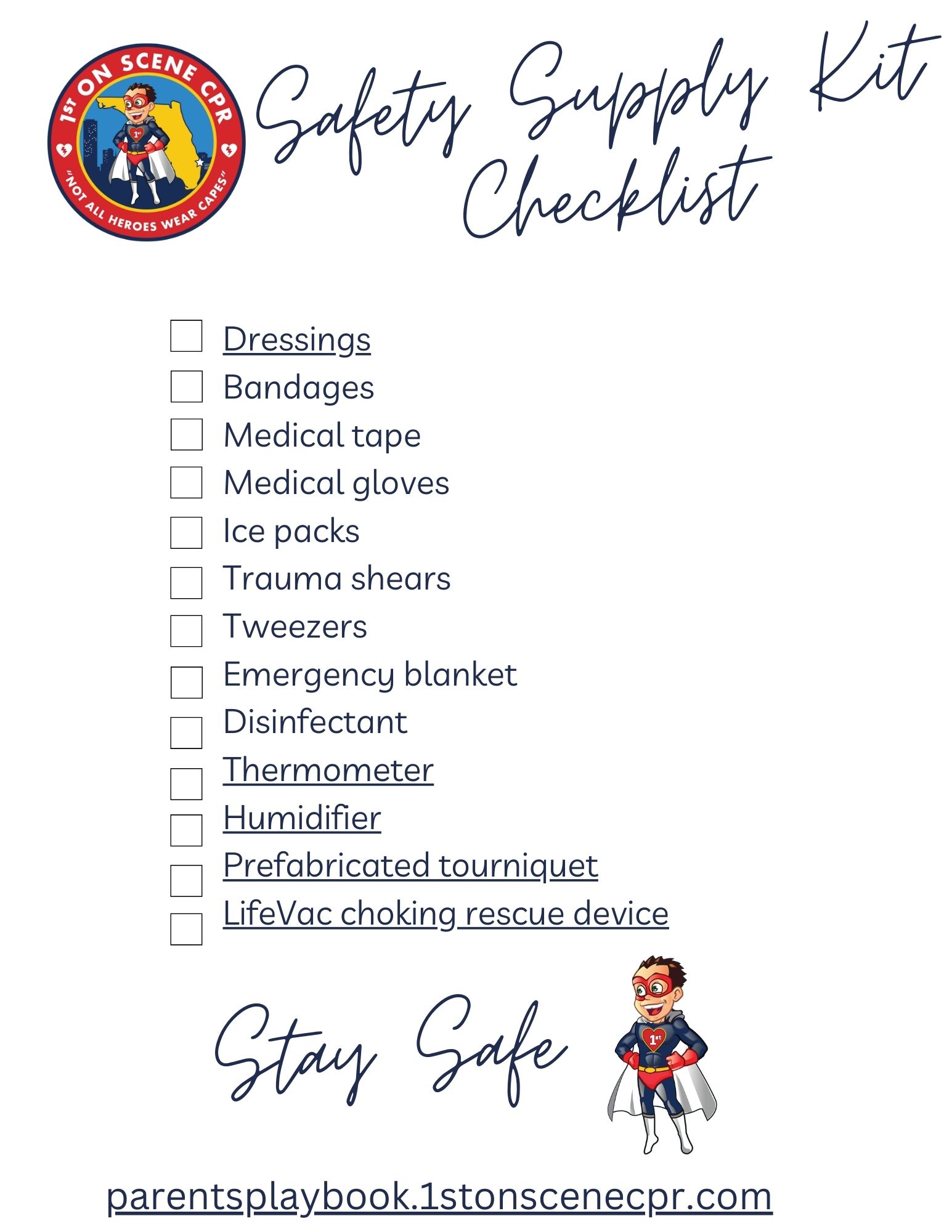 Safety Supply Kit Checklist